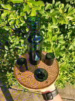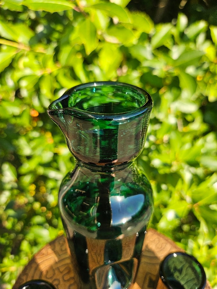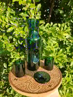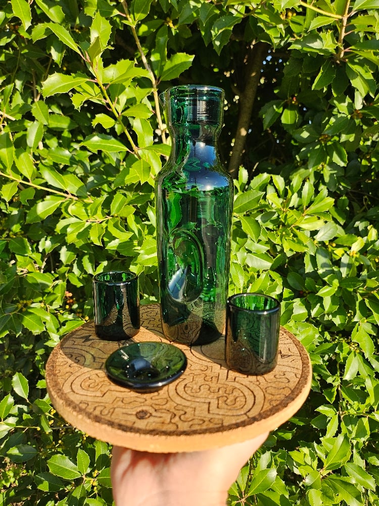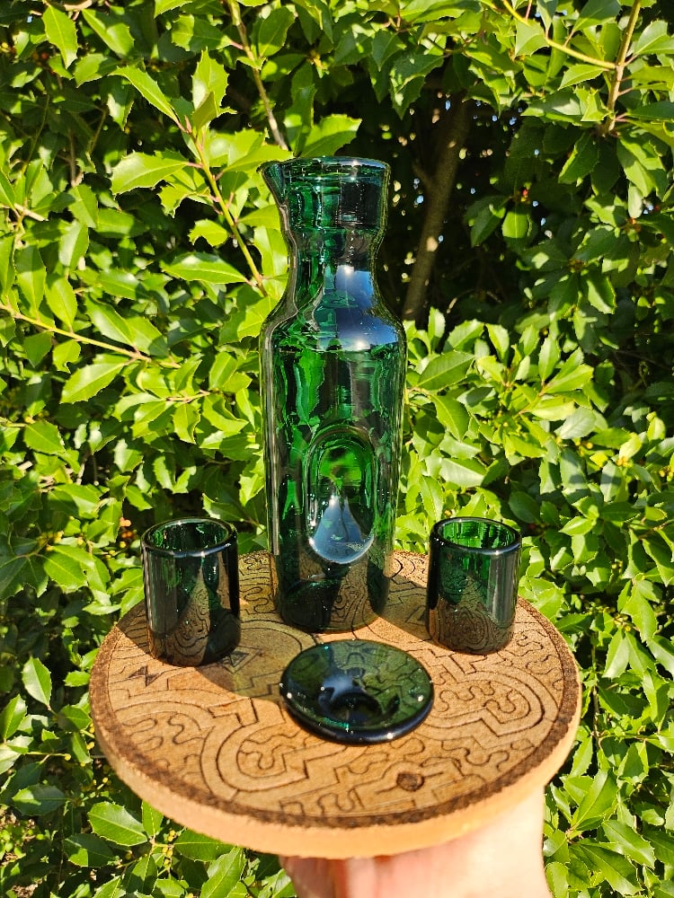 This set comes with a carafe, 2 shot glasses, and a small dish.