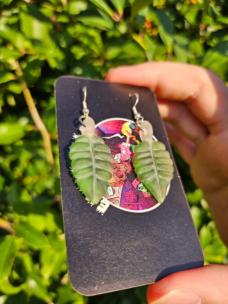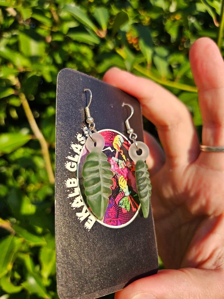 This Earing Set was made with a green glass and then sandblasted.