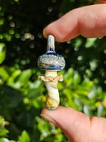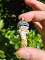 Mushroom pendant made with lotus white and blue caramel. There is also crushed blue caramel glass to create some texture.