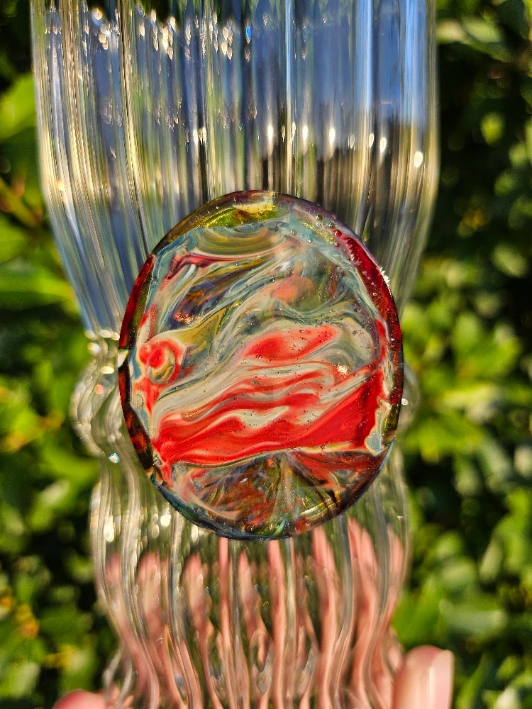 Estimated 18oz scalloped Glass sporting a UV reactive geode slice.